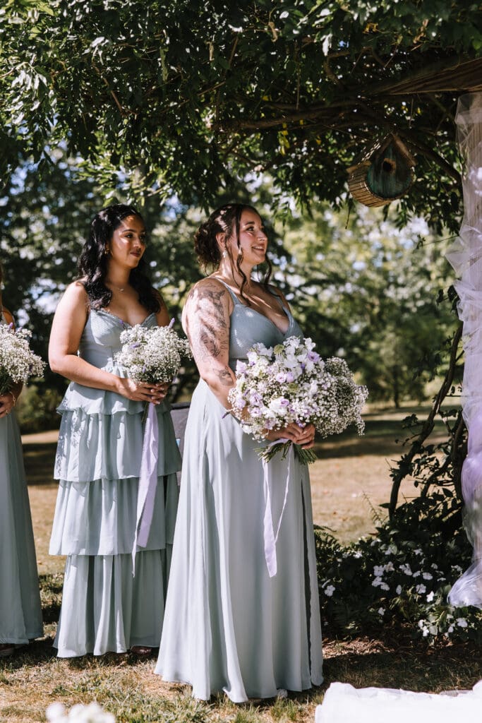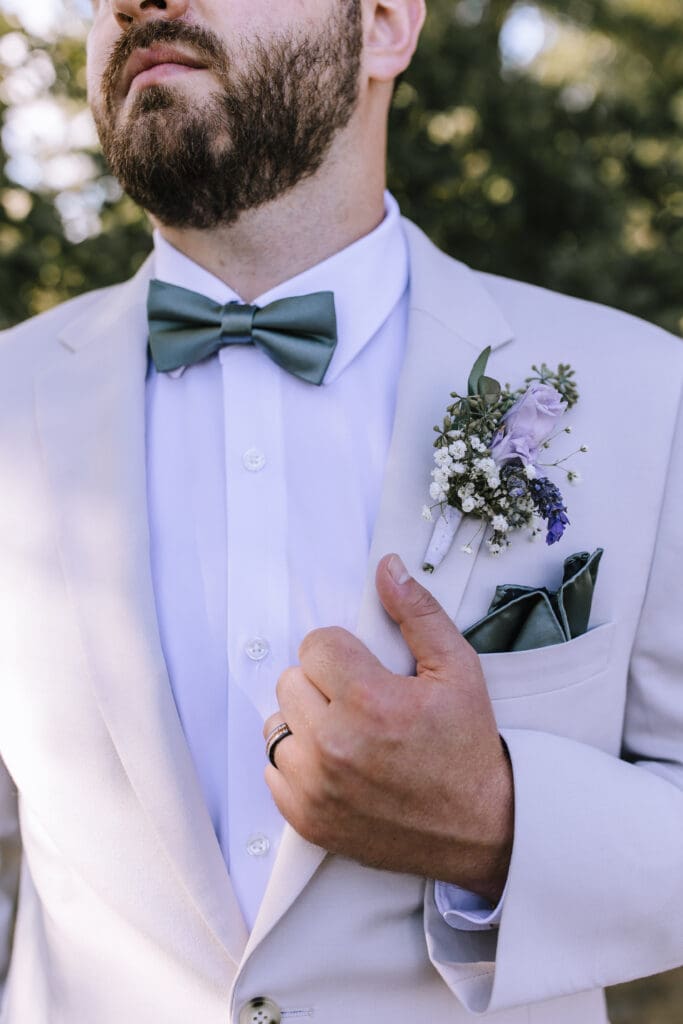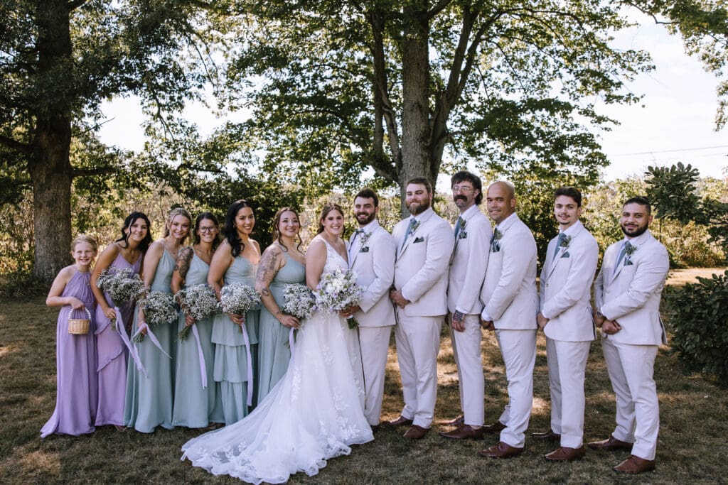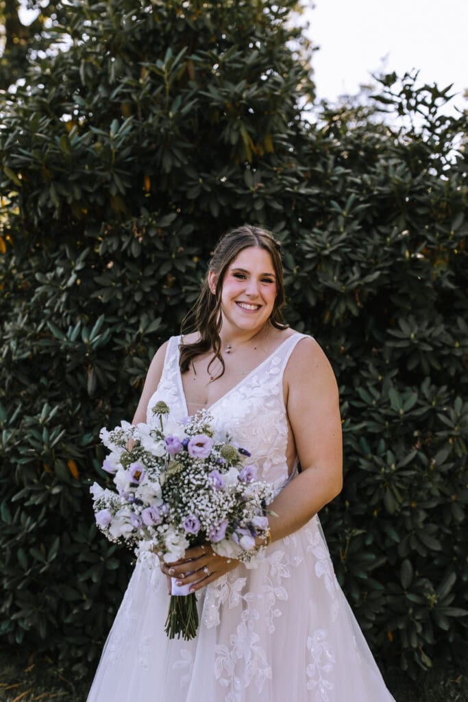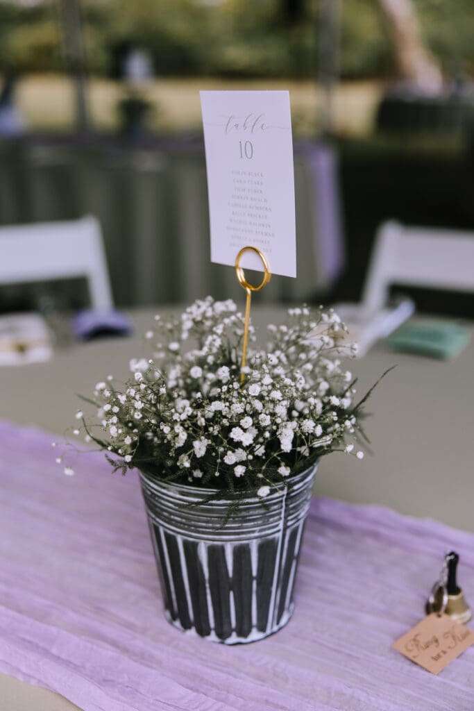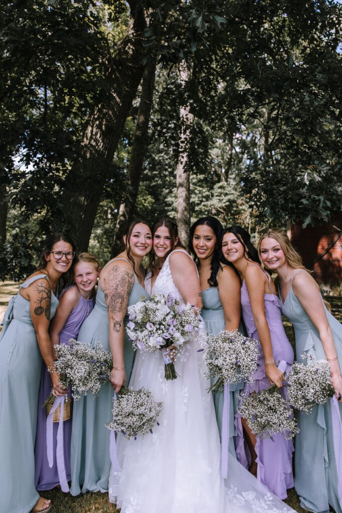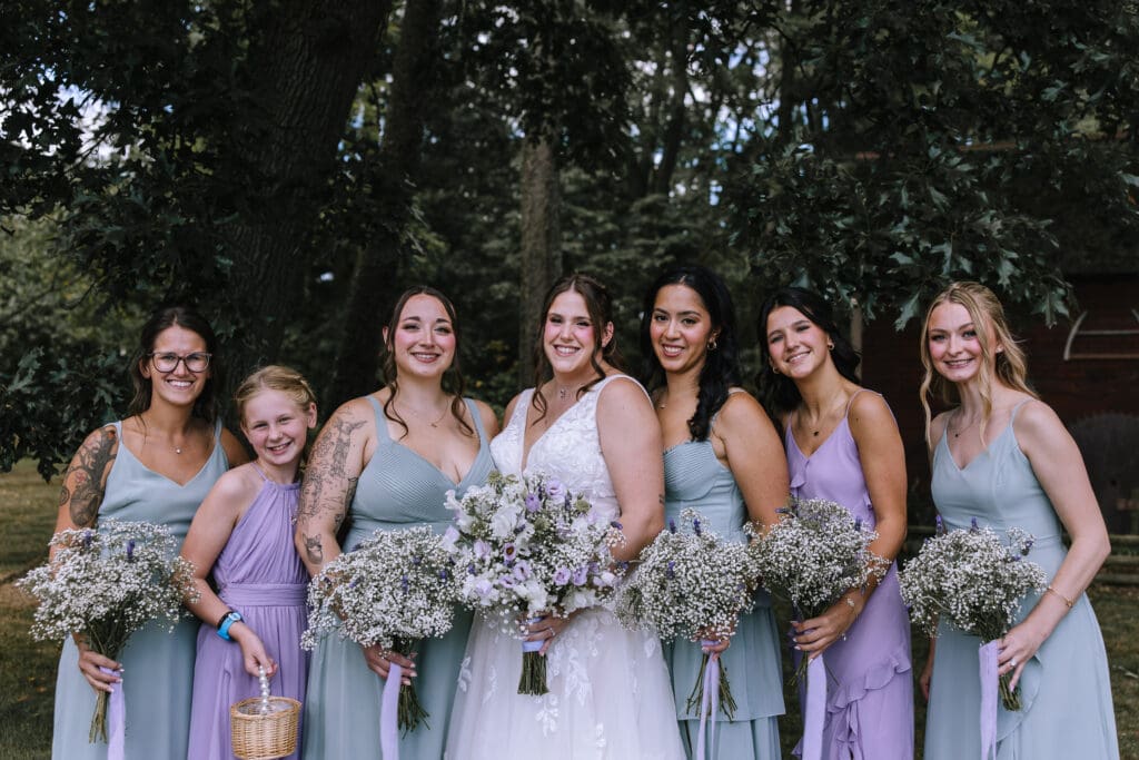 For her bridesmaids and centerpieces, we embraced a more understated approach. Baby’s breath and fresh greenery took center stage, allowing texture and movement to speak for themselves. Gentle pops of purple tied in the lavender from Anna’s bouquet and mirrored the bridesmaids’ dresses — a subtle thread weaving everything together.