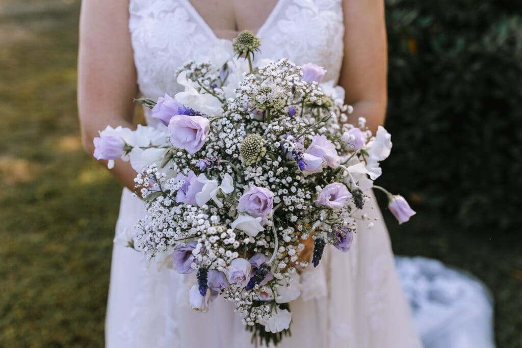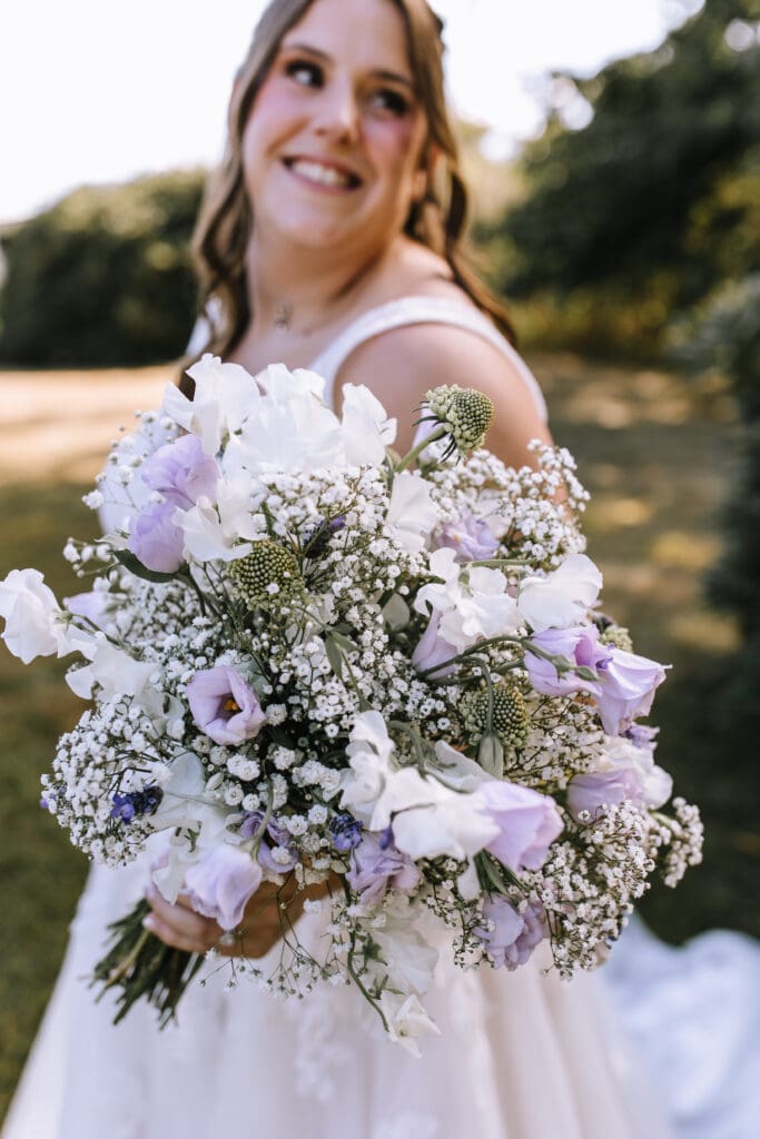 Sweet, summer-soaked floral aromas were the first thing you noticed about Anna’s bouquet. I have never designed one quite as honeyed and perfumed as this. Sweet pea and lavender intertwined in the most beautiful way — warm, nostalgic, and softly lingering. You could catch the scent just standing beside her, like the garden itself was within her bouquet.