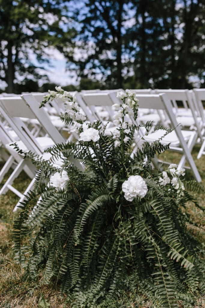 One of my favorite design elements from the day was lining the ceremony aisle with lush ferns, each one accented with blooms tucked thoughtfully inside. It created a full, garden-inspired aisle moment — immersive and romantic — while still honoring the couple’s desired investment. Beauty can be abundant and intentional at the same time.